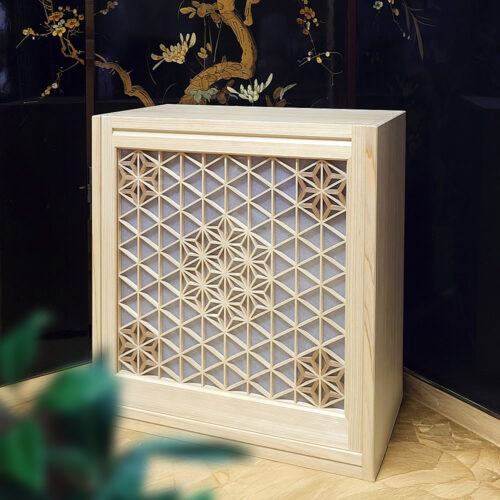 This piece is handcrafted by Takashi Morimoto, a traditional Tategu (joinery) craftsman from Morimoto Tategu-ten in Takamatsu City, Kagawa Prefecture. He has been certified as a “Contemporary Master Craftsman” by the Ministry of Health, Labour and Welfare, and creates Kumiko-zaiku (woodwork lattice) as part of his joinery work.